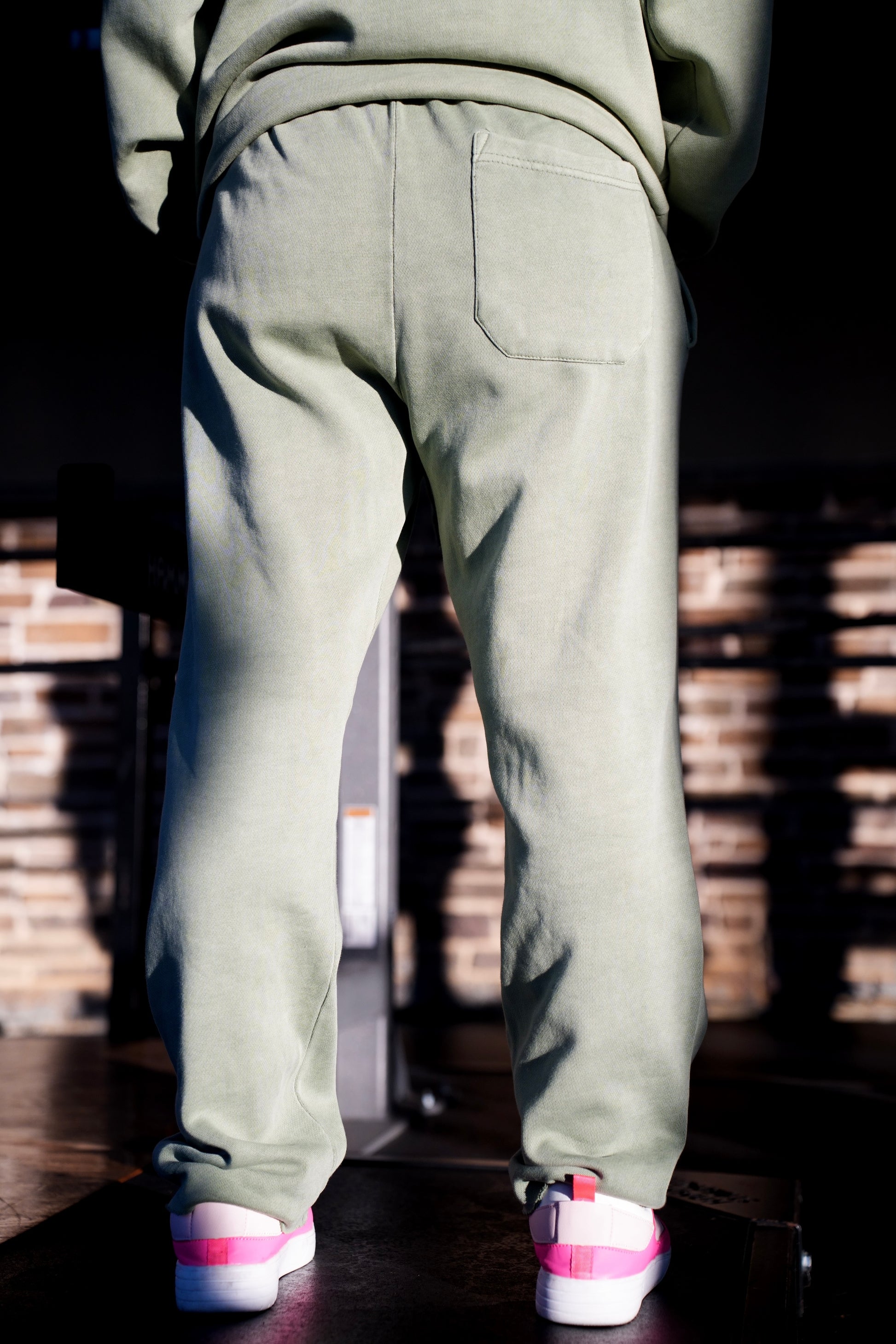 - Elastic waistband + cuffs